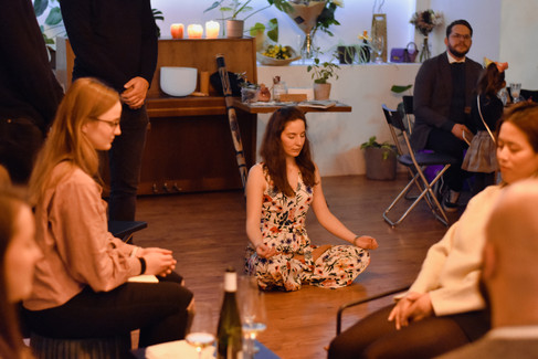 Hence, the crucial part of my launch was to have a meditation, many of which dreaded at first, to help not only me, but also the participants, calm down and connect more with oneself. The meditation was the key element of the launch. Not the cork popping, not the raffle, the ritual! And I was beyond grateful that my years-long teacher and yoga guru Nikol led it.
